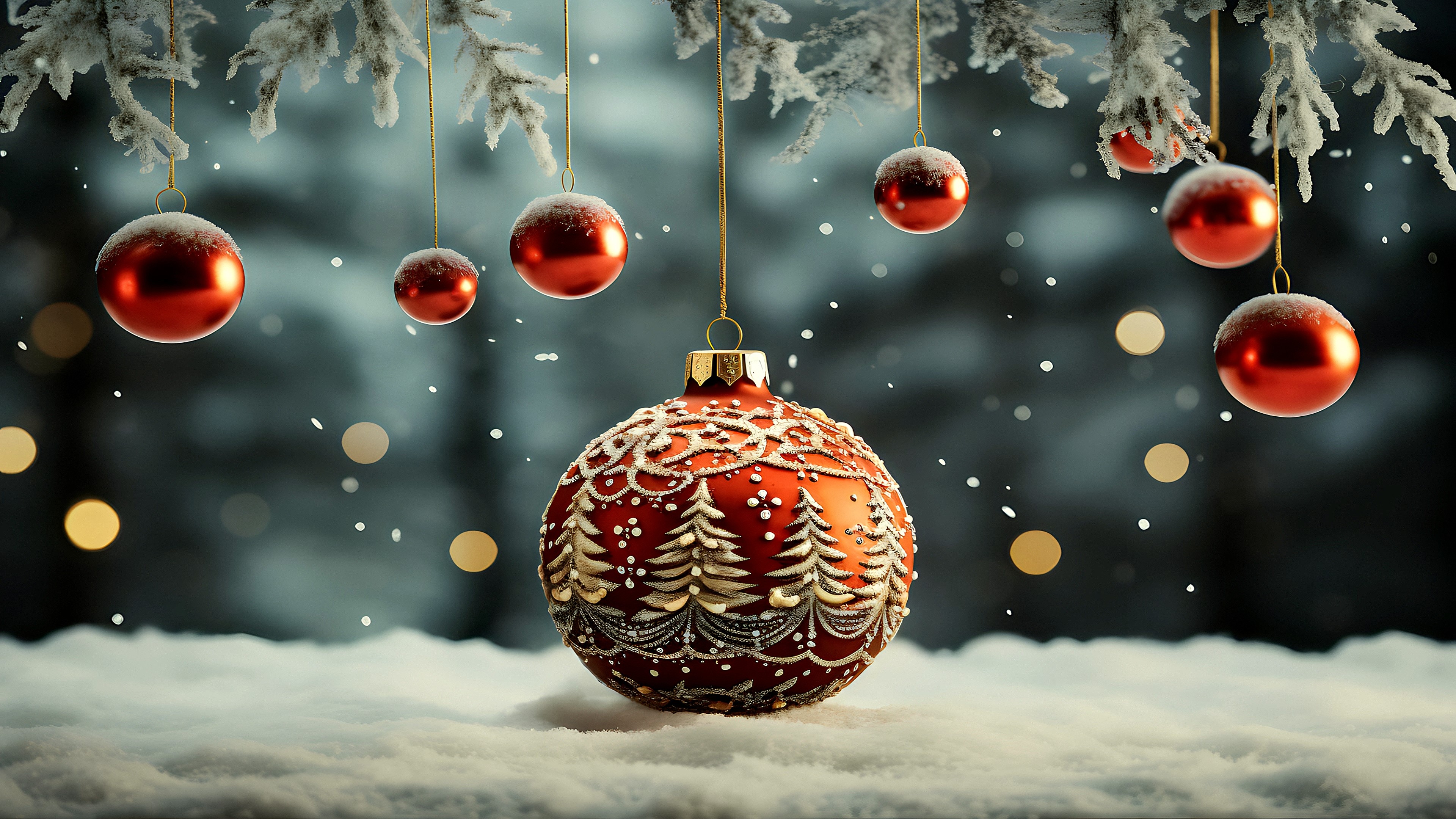 Weihnachkugeln, Adventskranz, Mistel Zweige, Lichterketten, Frohe