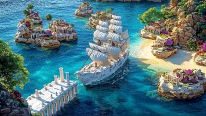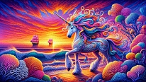 Reisen, Urlaub, Palmen, Stand und Meer, Romantische Sonnenuntergang Bilder, Pegasus, Einhorn, Engel,