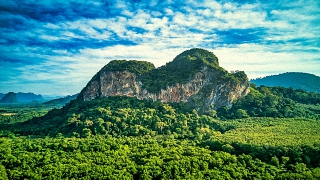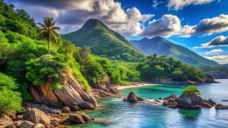 Berge, Palmen Stand und