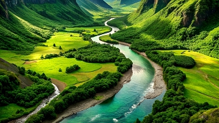 Berge, Seen, Fluß,